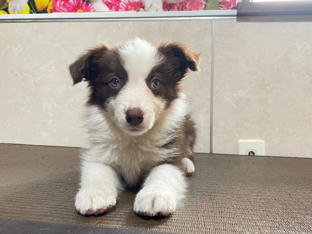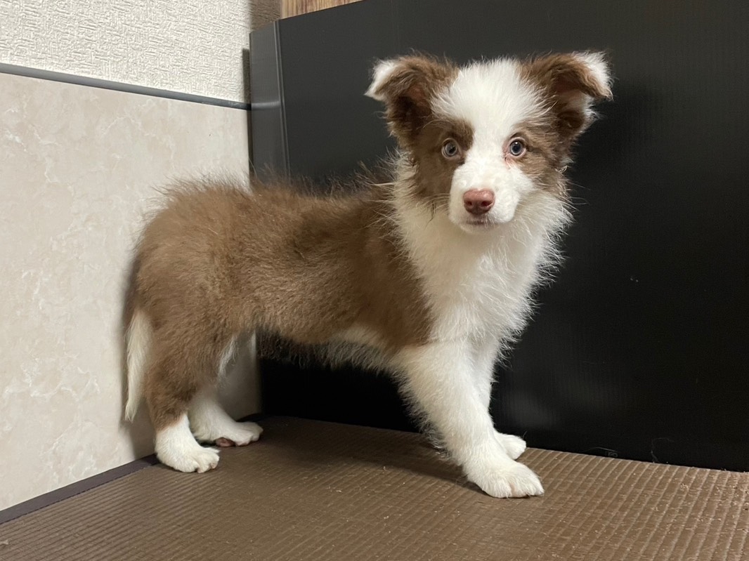 綺麗ながらのチョコホワイトです 可愛いですよ💛(gsっ子) ママに似てとってもキュートになりますよ☆ 柄もとても綺麗で、お顔も可愛いです。 ママに似た可愛い仔になります! 完全室内でのブリードを行い、お迎えまでトイレやお留守番などの躾・トレーニングを行っております。 他の犬との社会性も取っていきます。 両親ともCL検査済 セロイドリポフスチン症(CL)については、ご心配いりません!! 両親はTHE DOGのモデルになるとってもキュートな子です♪ 某専門学校にて、学生向けのトレーニング犬としても活躍しております! ぜひぜひ、ご見学にいらして下さい。 お問い合わせお待ちしております! -